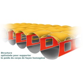 - Évite l'enfoncement des genoux et des coudes (notamment par rapport aux matelas avec boudins dans le sens de la longueur),